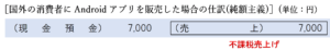電気通信利用役務の提供に係る国内取引の判定は、役務の提供を受ける者の住所等が国内にあるかどうかにより行うため、国外の消費者にAndroidアプリを販売する場合は国内取引に該当せず、アプリ販売収入は不課税売上げとなります。