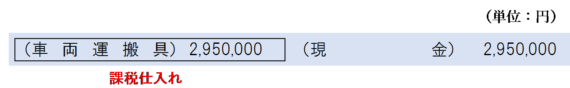 次に、新車を295万円(購入価格300万円-未経過自動車税5万円)で現金により購入したものとして仕訳を考えます。