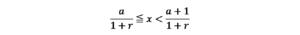 上記不等式の左辺に注目すると、xは、a÷(1+r)以上の整数値になることから、請求書や領収書に記載する税抜金額は、税込金額を(1+消費税率)で割った金額を小数点未満切り上げした値になると結論付けることができます。