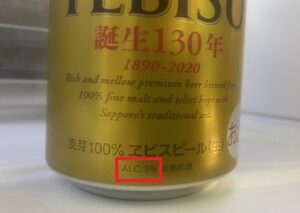 ビールや発泡酒、日本酒などのアルコール飲料には、下記の画像のようにアルコール度数が記載されています。